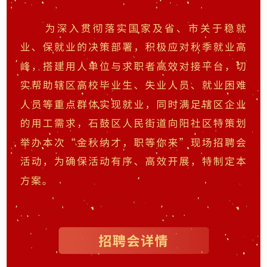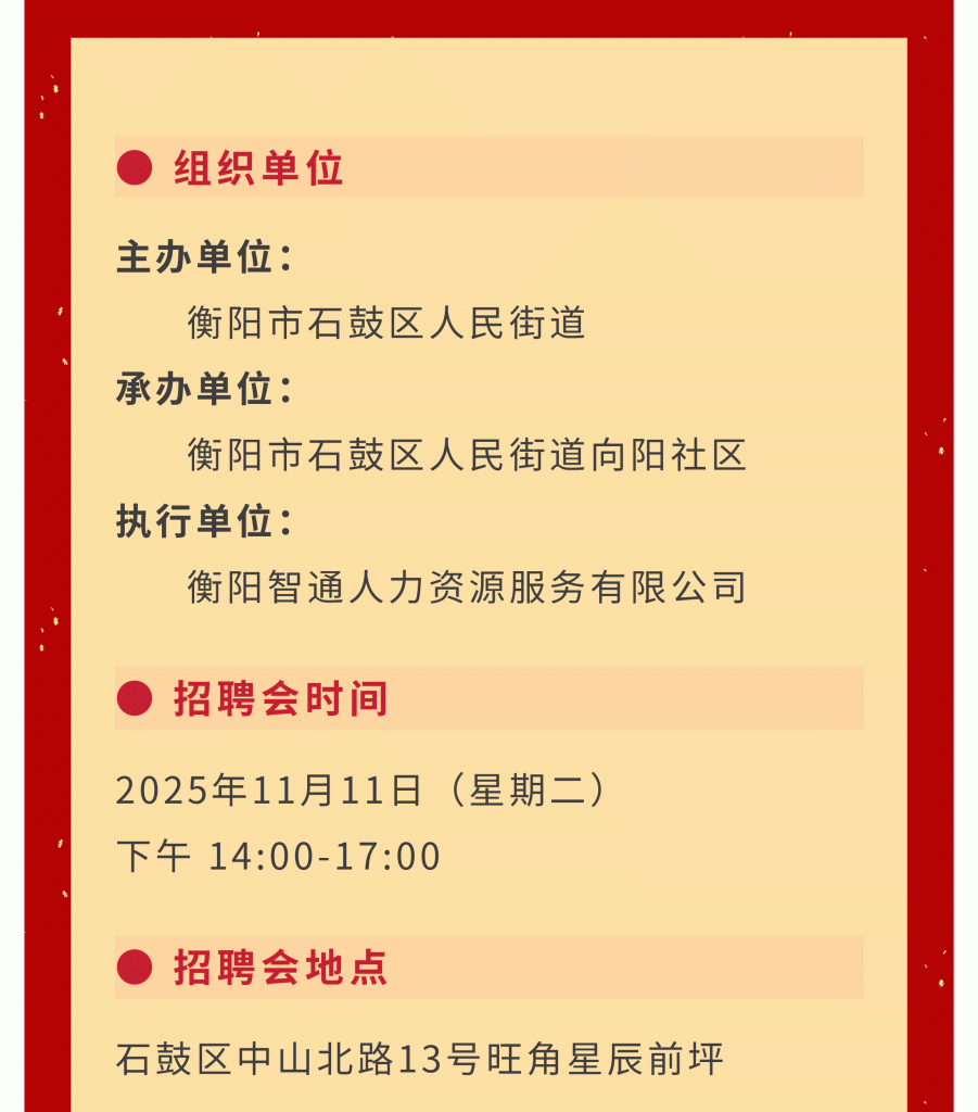 “金秋纳才 职等你来”——石鼓区向阳社区“金秋招聘月”现场招聘会2025-11-07招聘信息, 政策资讯 上一页 文章 石鼓区人民街道蒸阳社区2025年“百日千万招聘专项行动”招聘会 下一页 文章 石鼓区合江街道“暖冬行动,职为等你”招聘会暨零工市场招聘会及直播带岗 相关文章 金秋招聘零距离,精准送岗促就业2025-12-11 石鼓区蒸阳社区 2025 年 “民营企业服务月” 暨高校毕业生现场招聘会通告2025-04-11 衡阳劳务派遣行业加速洗牌:信用评级新规下的机遇与挑战2025-04-10 浦发银行东莞分行厚街支行公司客户经理招聘(职业发展平台+资源优先)2025-03-11 派驻东莞理工学院校友会-行业发展研究专员及综合服务专员招聘公告2025-03-10 长安书苑现面向社会公开招聘工作公告!2024-12-11